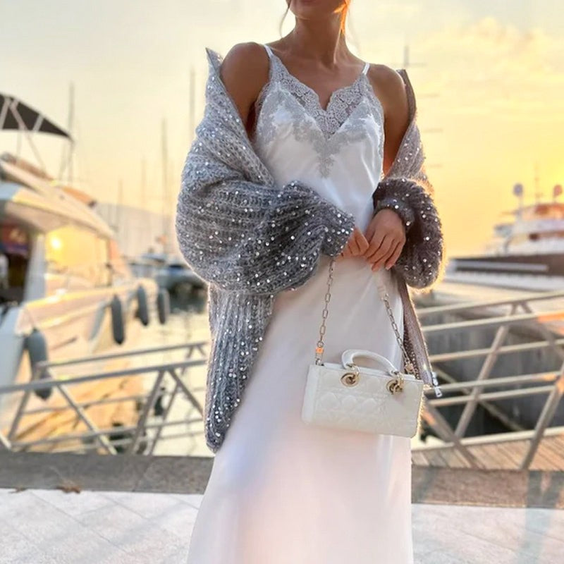 📦Consegna gratuita📦Paillette alla Moda Maglione di Maglia con Cerniera Intera Per Donna